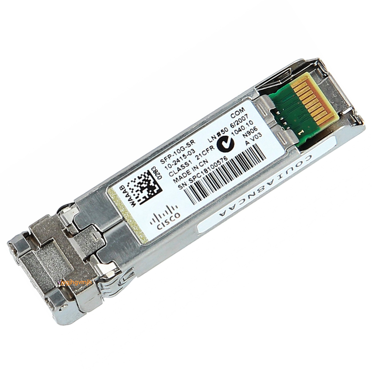 ماژول فیبر نوری سیسکو مدل SFP-10G-SR از نوع LC بوده وبا برد متوسط 80 تا 400 متر از طول موج 850 نانومتر برخوردار می باشد. این محصول در ابعاد 8*55*13 میلی متر با وزن 170 گرم بوده و دارای سرعت انتقال دیتا 10 گیکابیت بر ثانیه، با ولتاژ 3.3 ولت می باشد. و سازگار با تمامی روترها و سوئیچ های دارای پورت SFP می باشد.